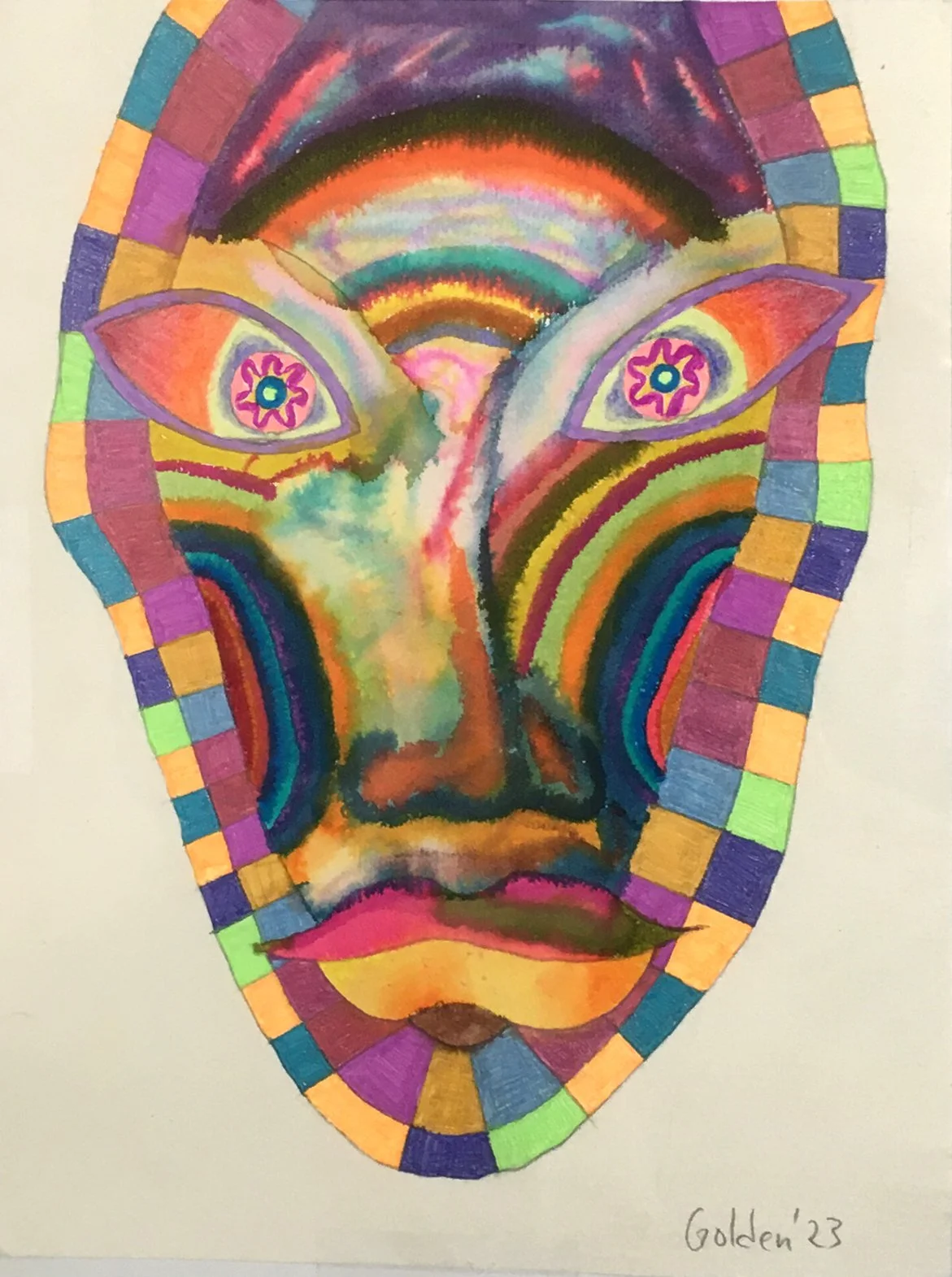 Mask 1, 2023  Mixed media on paper, 9 x 12 inches